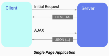 - 단 한번만 리소스(HTML, CSS, JS)를 로딩. 그 이후에는 데이터를 받아올때만 서버와 통신한다.
